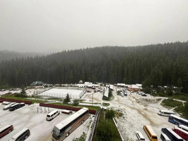 Сніг випав в урочищі Заросляк, що біля Говерли. Станом на ранок 24 серпня температура повітря сягає +2°С. Також спостерігають дощі й град.